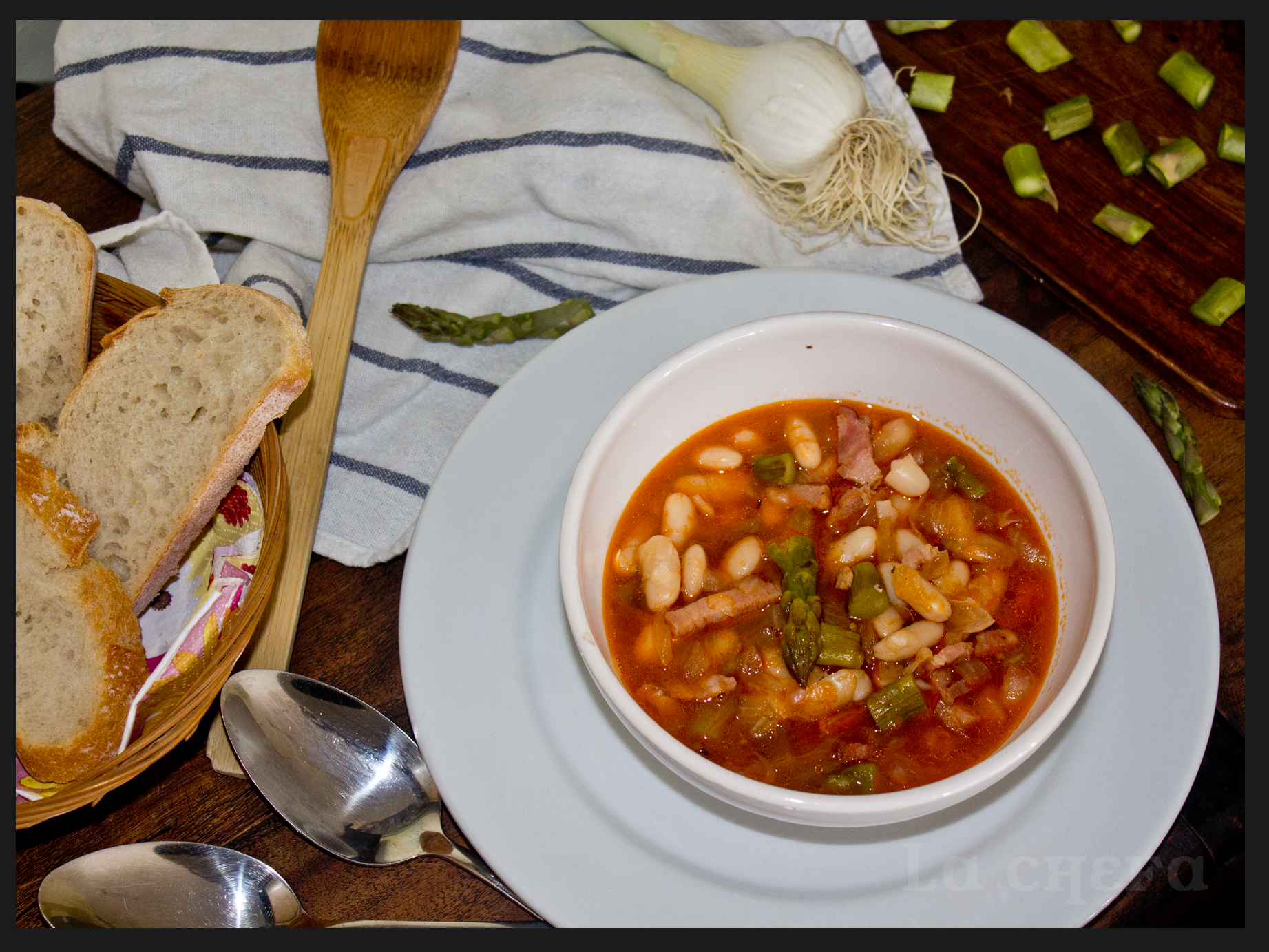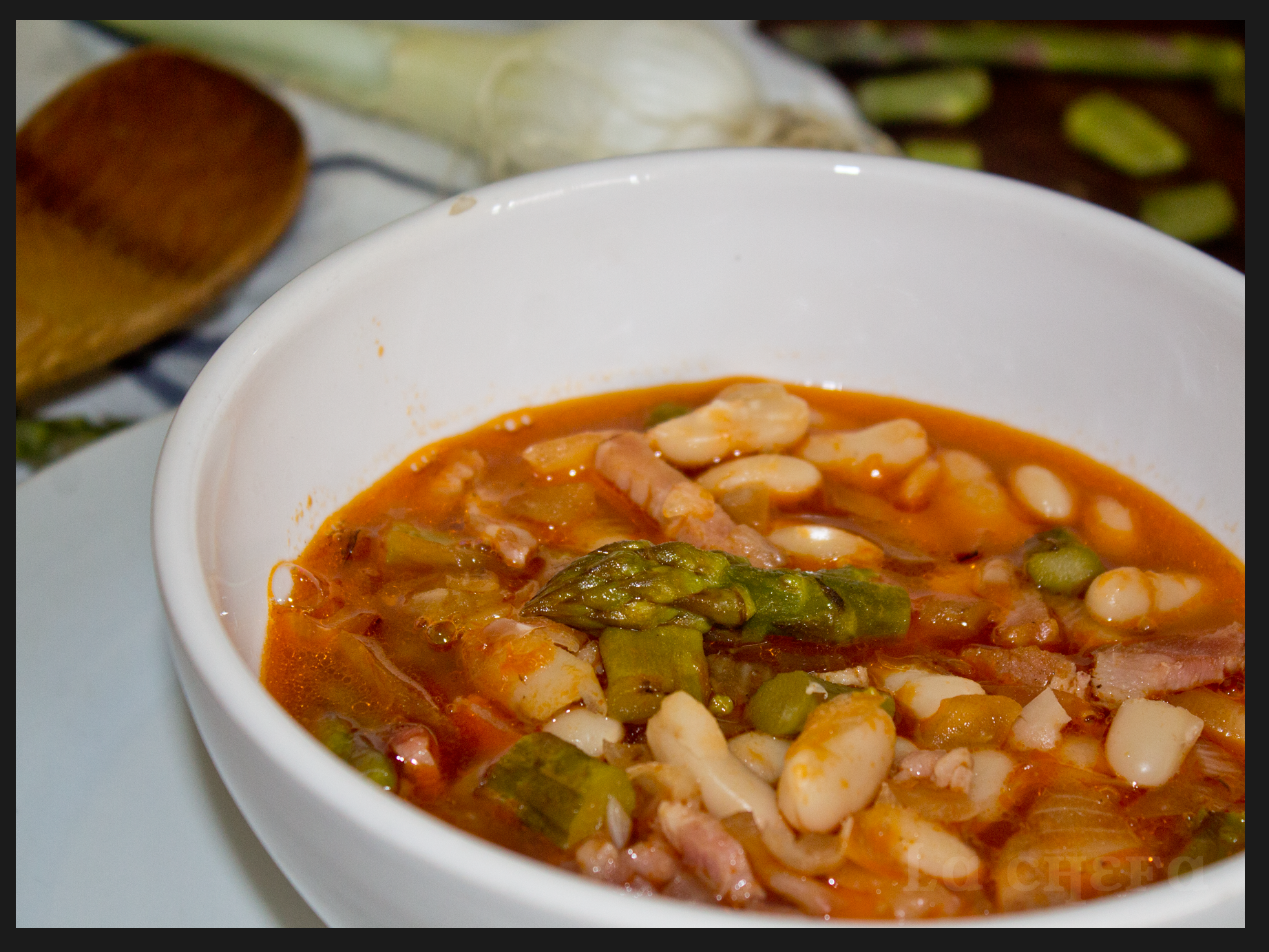 La receta que aquí os muestro, alubias blancas con bacon y espárragos, no está sacada de ningún libro ni web de cocina. Un día estaba en casa con un bote de alubias cocidas y no sabía cómo hacerlas así que abrí la nevera y vi unos espárragos y un paquete de bacon, y dije ¡Vamos a innovar!