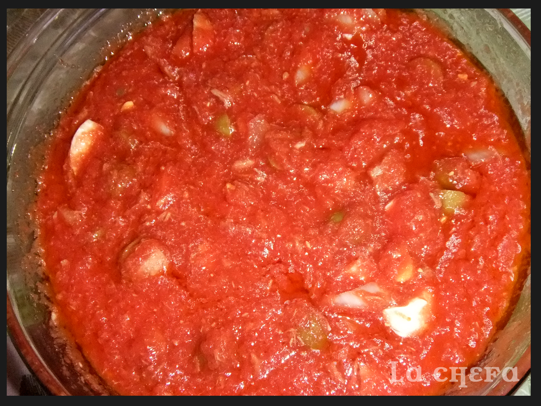 En esta receta la preparo con tomate triturado, pero lo podéis hacer con tomates enteros pelados y machacados.