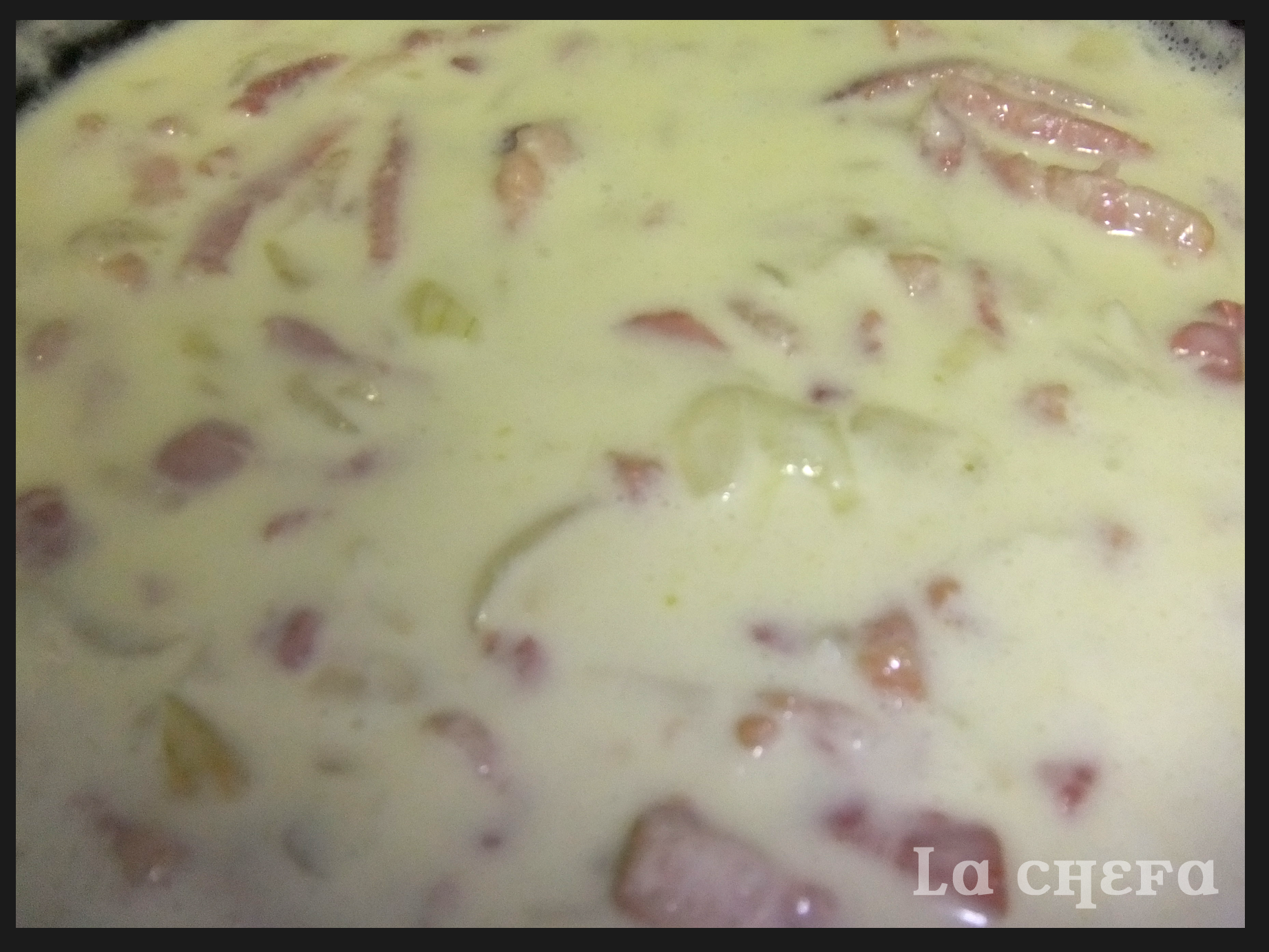 Añadir la nata y dejar a fuego medio que reduzca un poco.