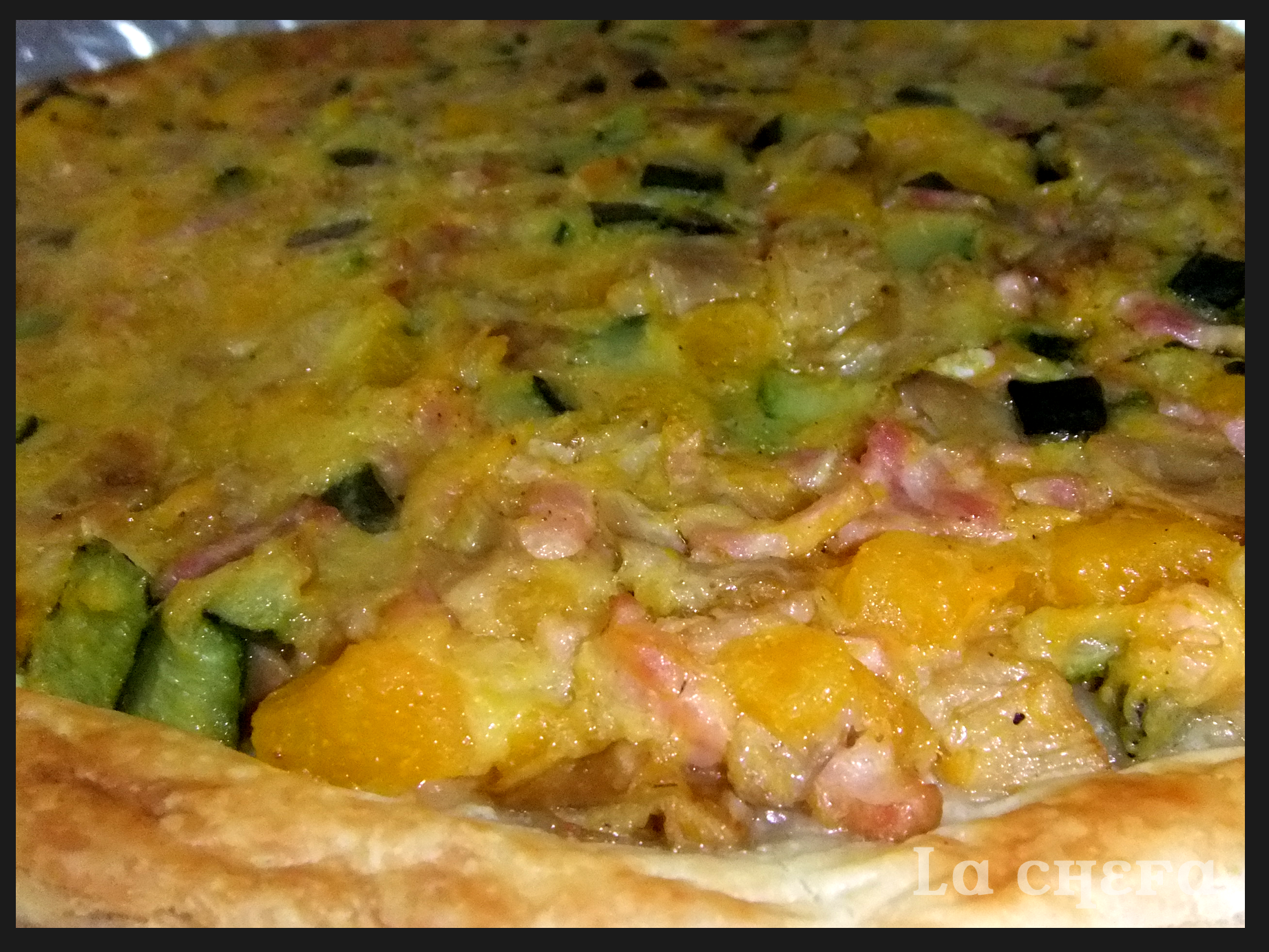 Esta pizza con masa de hojaldre tiene una combianción de sabores estupenda con el dulzor que da la calabaza y, de nuevo, una buena receta para que todos coman verduras.