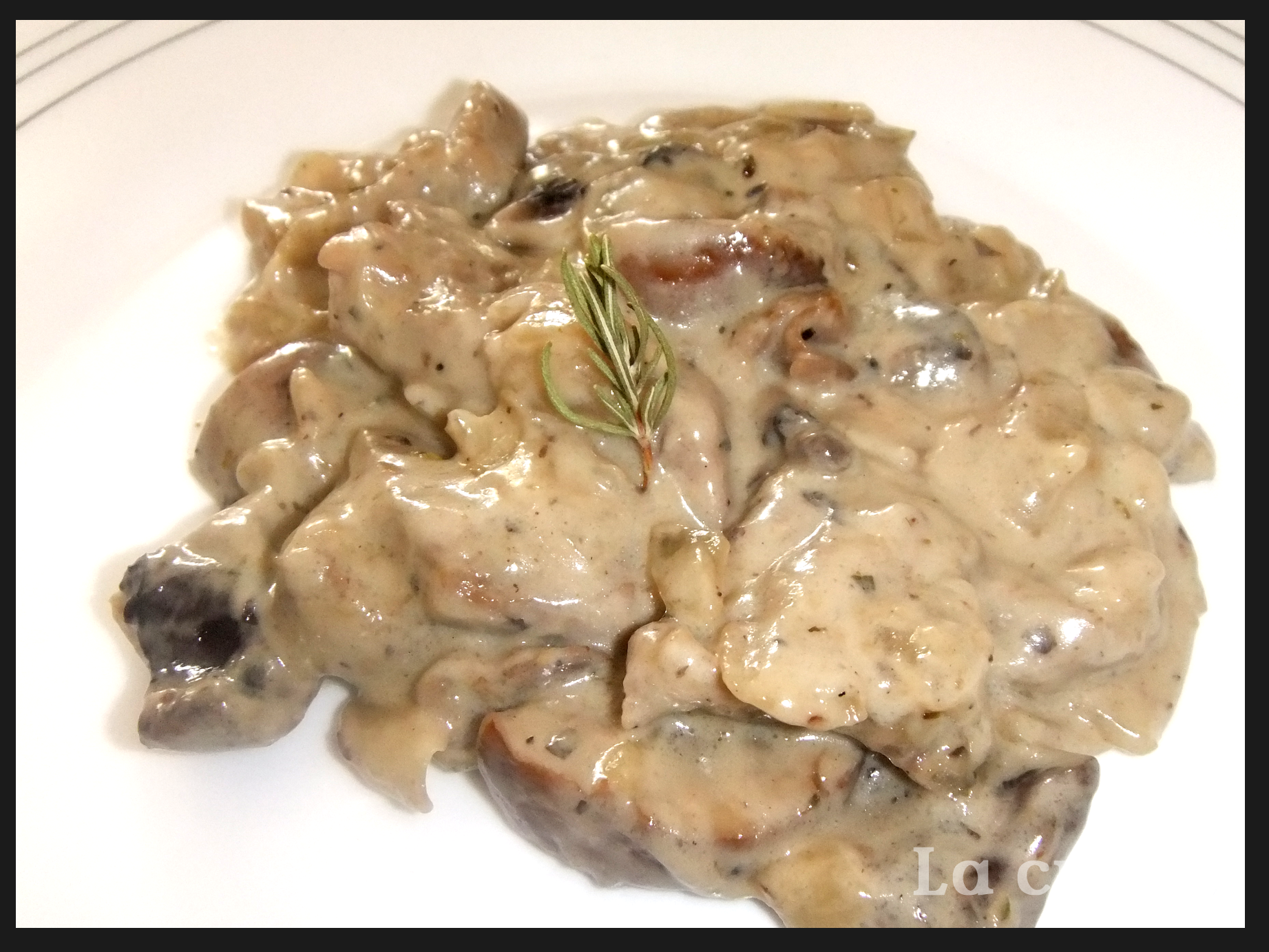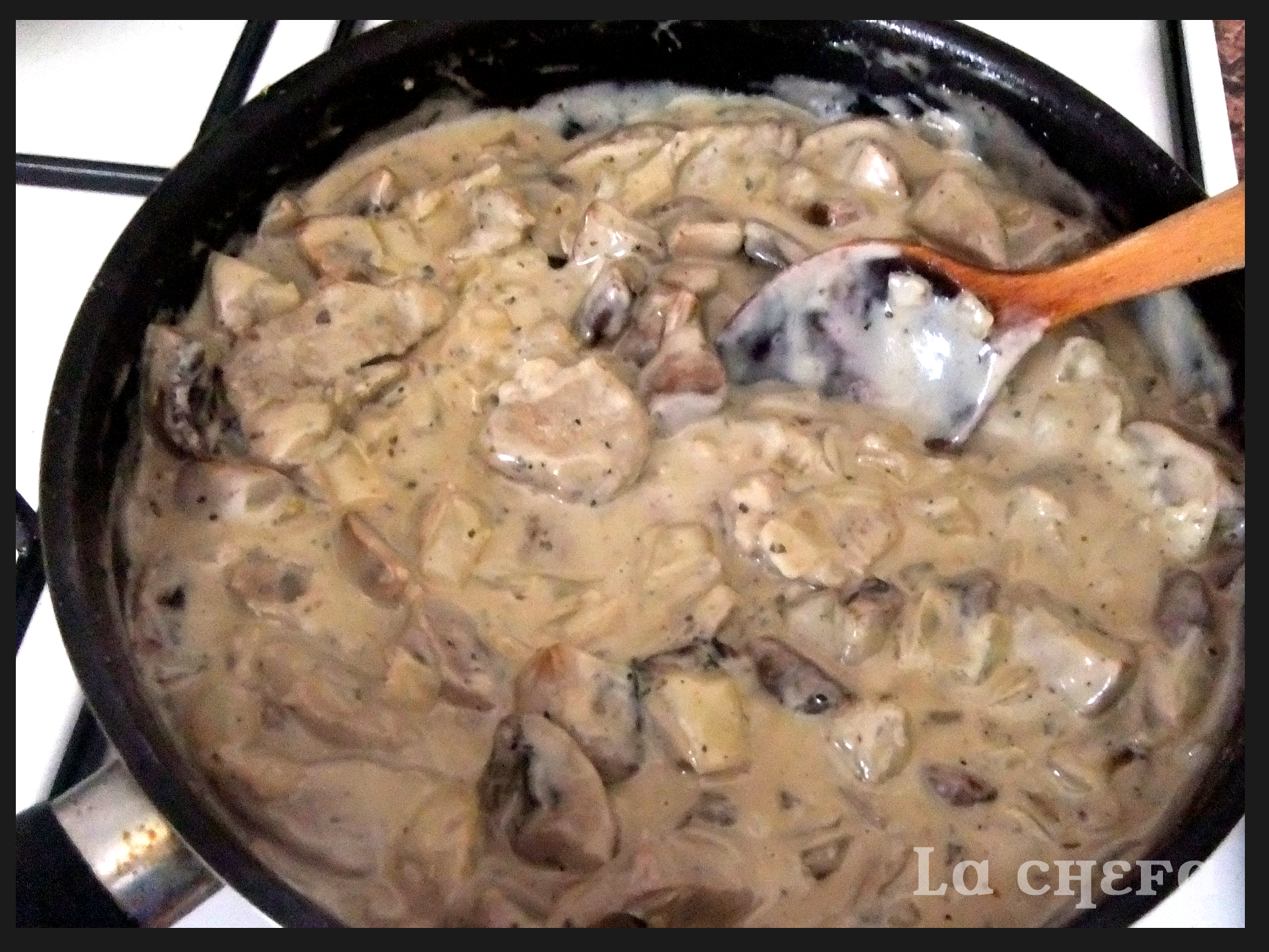 Cuando los champiñones estén blanditos, añadir la carne y la nata y dejar unos minutos.