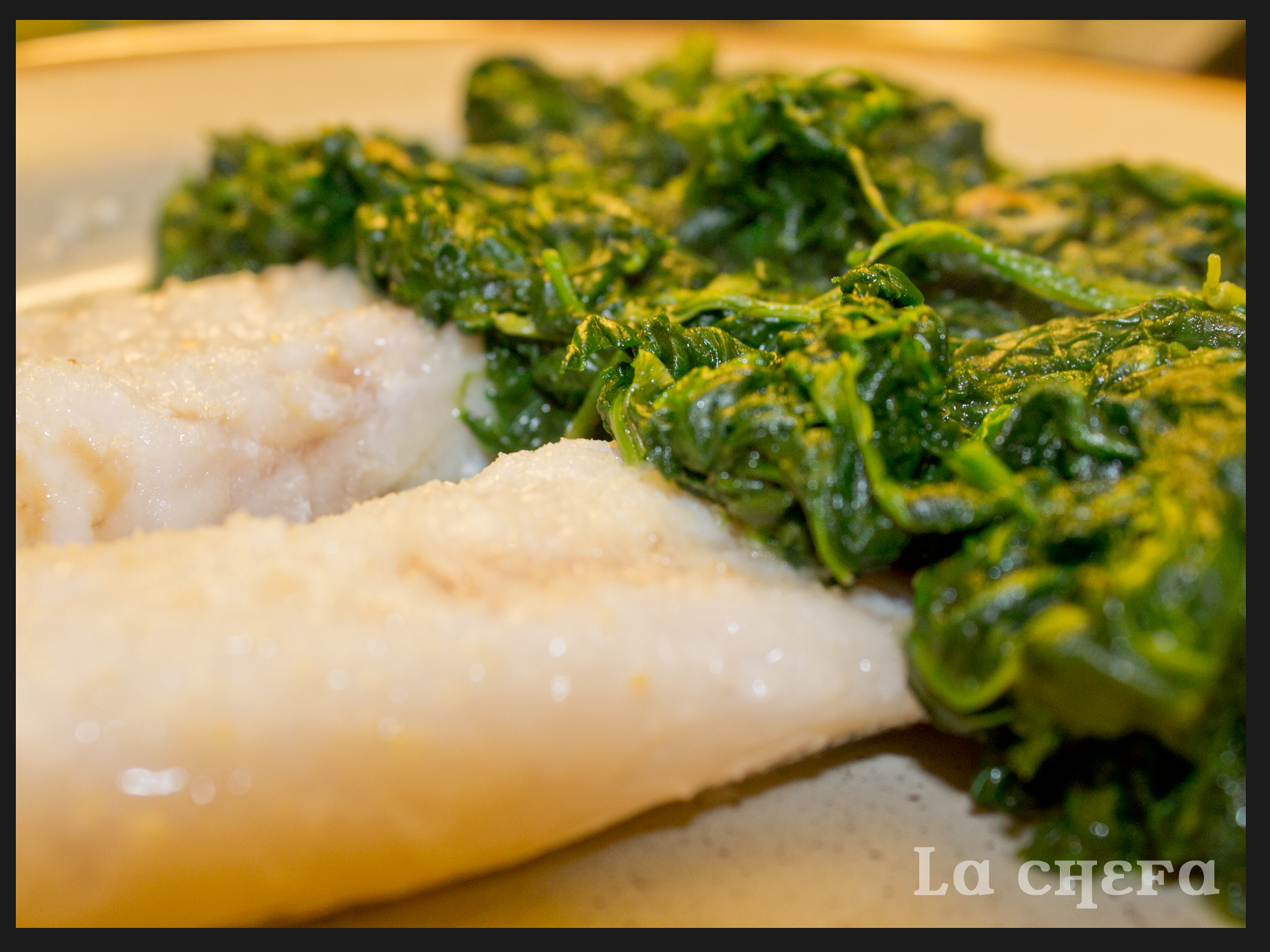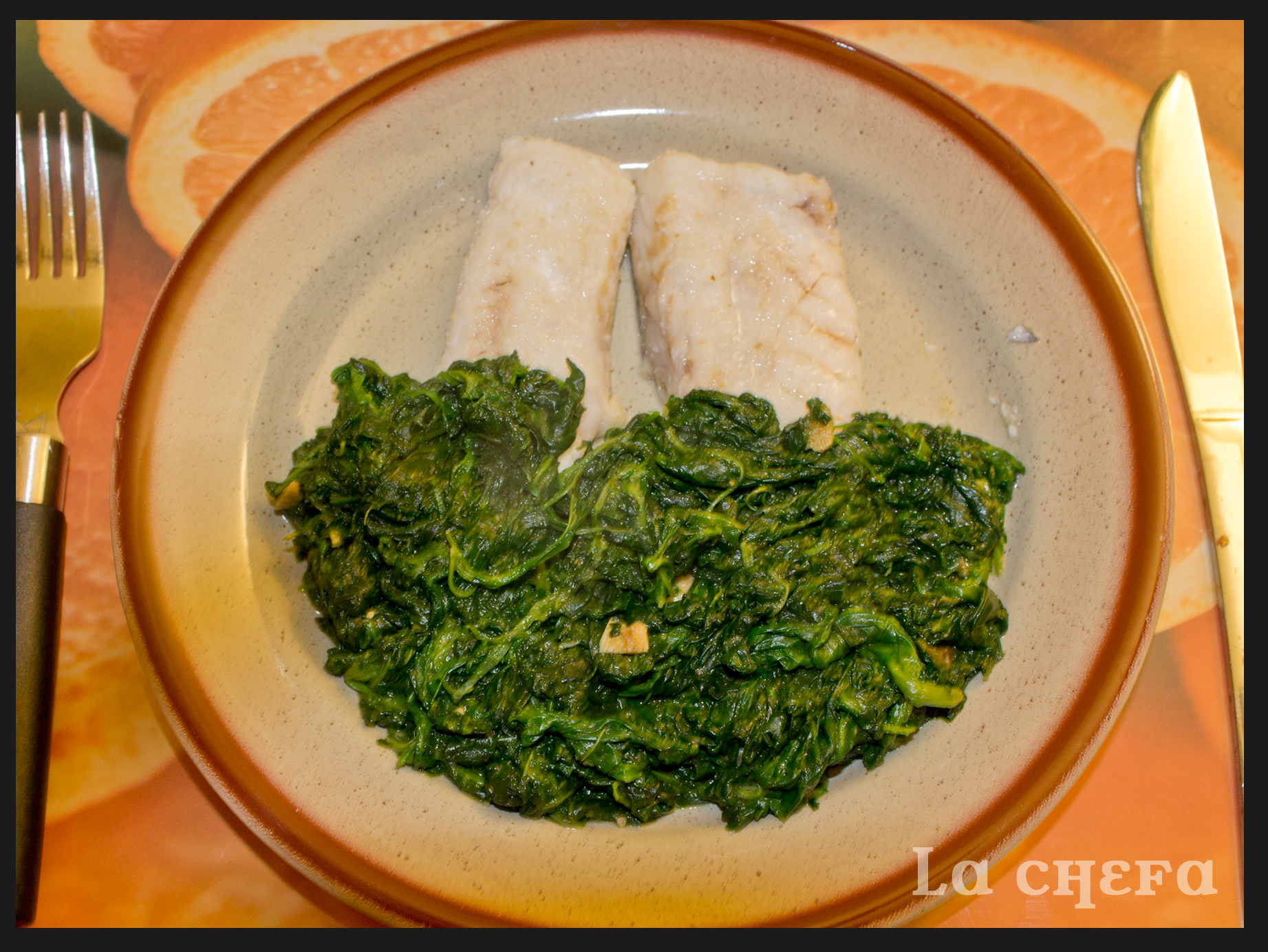 Poner una sartén grande a calentar con un chorrito de aceite y el diente de ajo picado. Cuando el ajo empiece a dorarse, añadir las hojas de espinacas, con una pizca de sal y cebolla en polvo, e ir removiendo hasta que estén salteadas.
