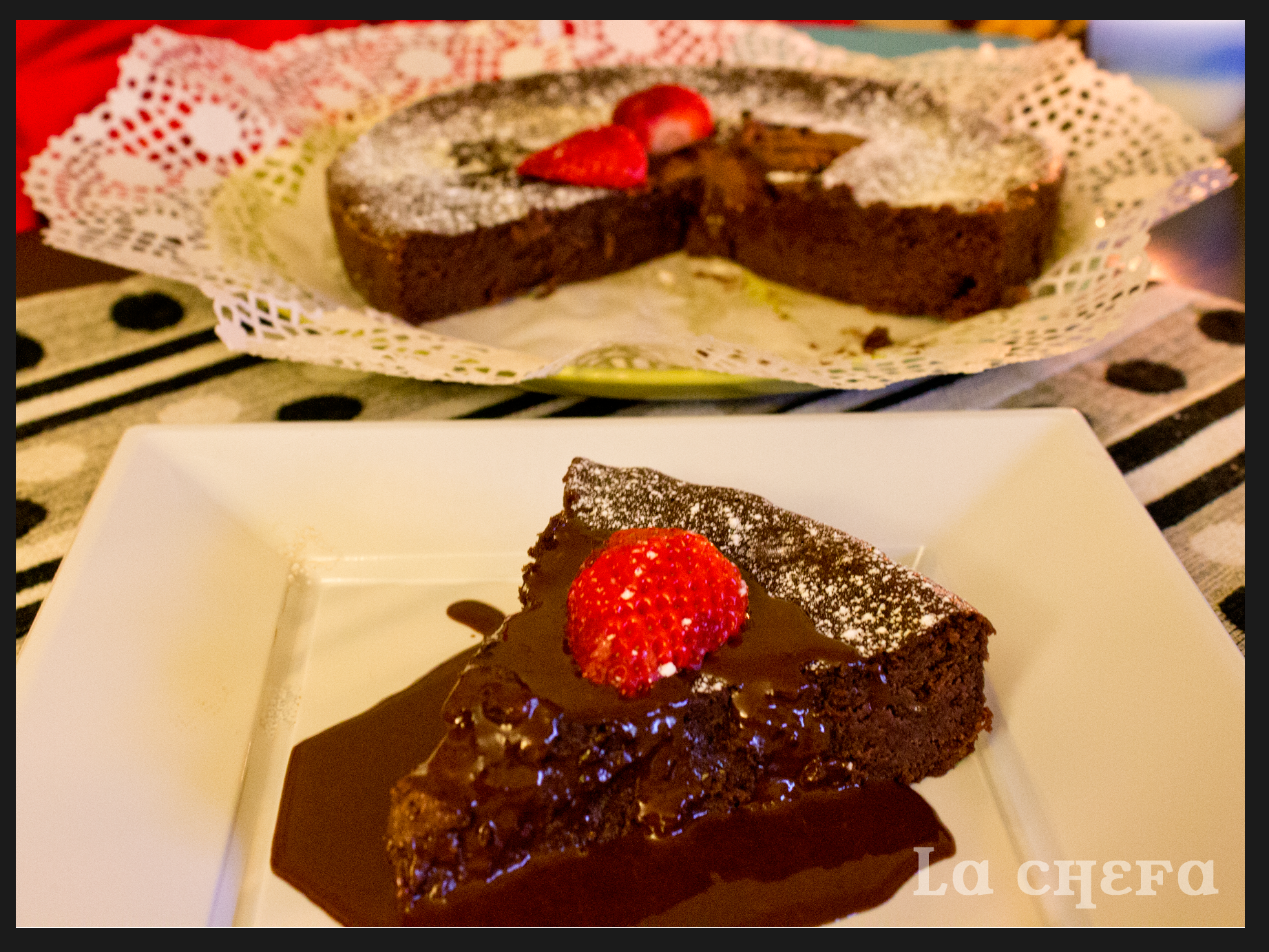 Cuando mi hermana y yo estudiábamos en Valencia y junto a mi prima y mi tía nos pasábamos tardes interminables jugando al parchís, ella nos solía preparar esta tarta que tanto nos gusta. Y bueno, en época de exámenes nos alegraba infinito cuando la veíamos aparecer con la tarta y un cazo de salsa de chocolate caliente para acompañarla.