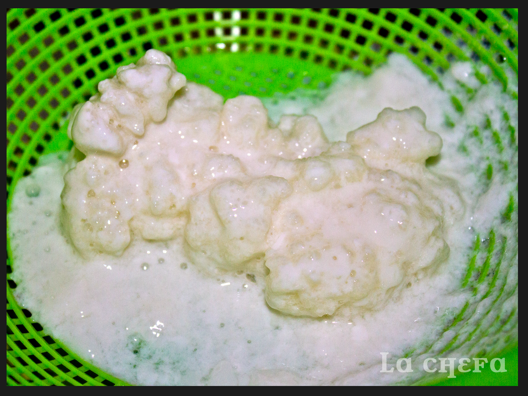 Una vez haya pasado el tiempo de fermentación, se deberán colar los nódulos con un colador de plástico.