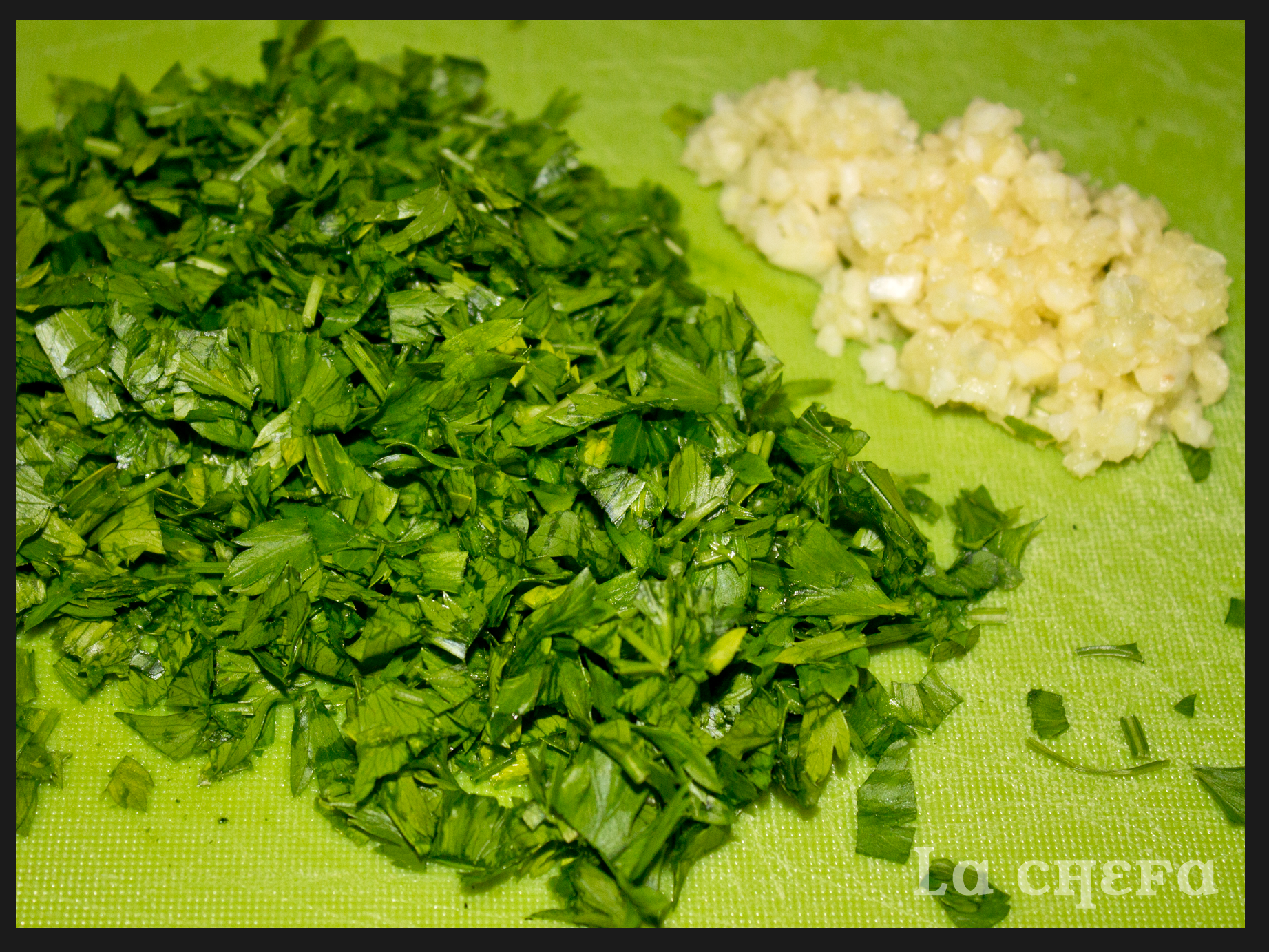 Sólo tres ingredientes son necesarios: un ramillete de perejil, una cabeza de ajos y aceite de oliva.