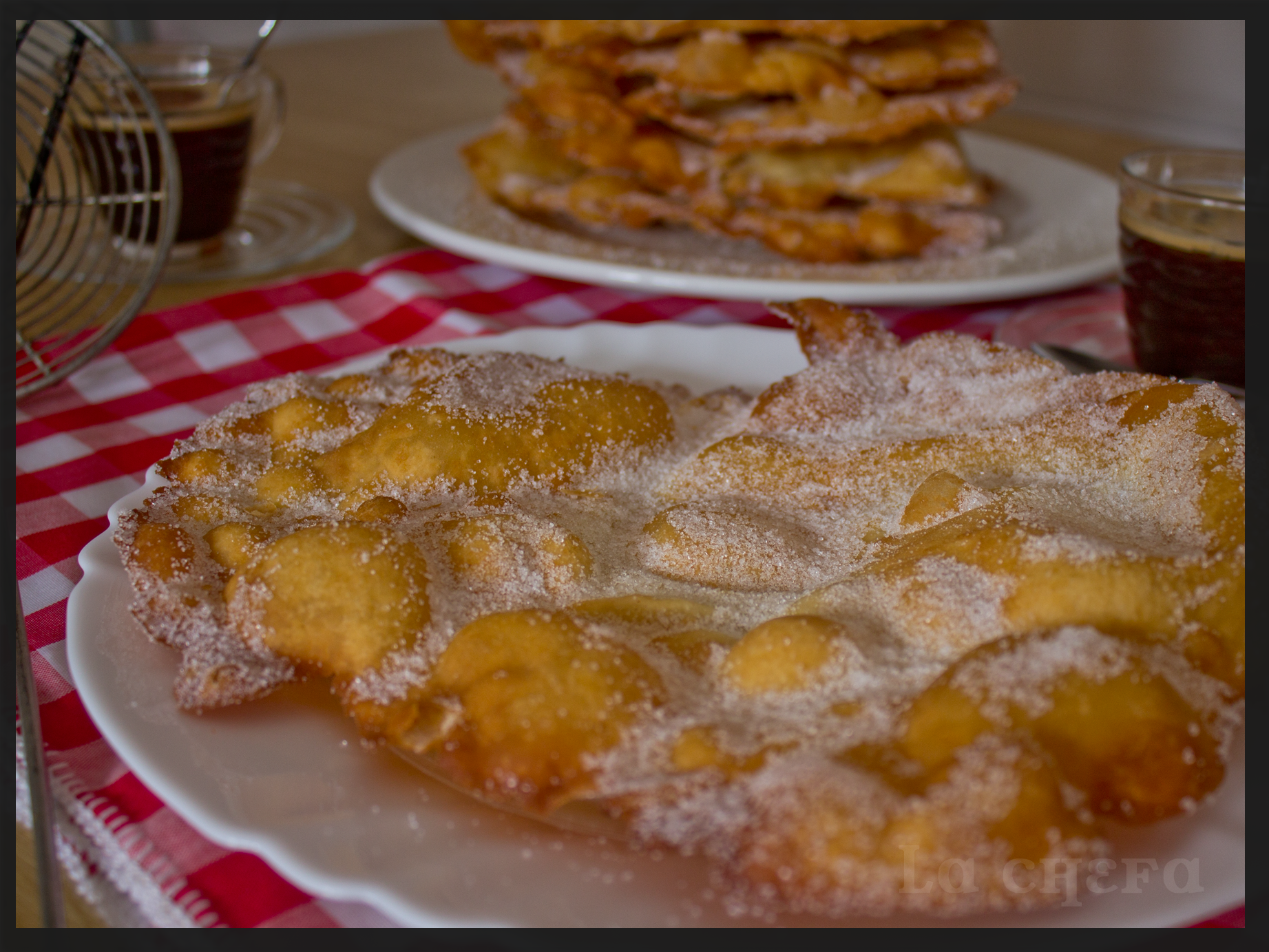 Freír una a una en el aceite caliente por los dos lados hasta que estén doradas y dejar escurrir en papel de cocina. Inmediatamente después, con la torta bien caliente, echarles bastante azúcar.