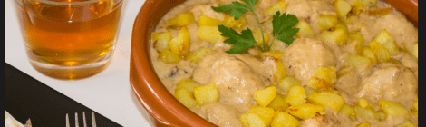 Albóndigas sorpresa de pollo en salsa de cebolla