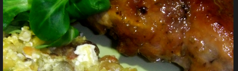 Costillas con salsa barbacoa, miel y orégano